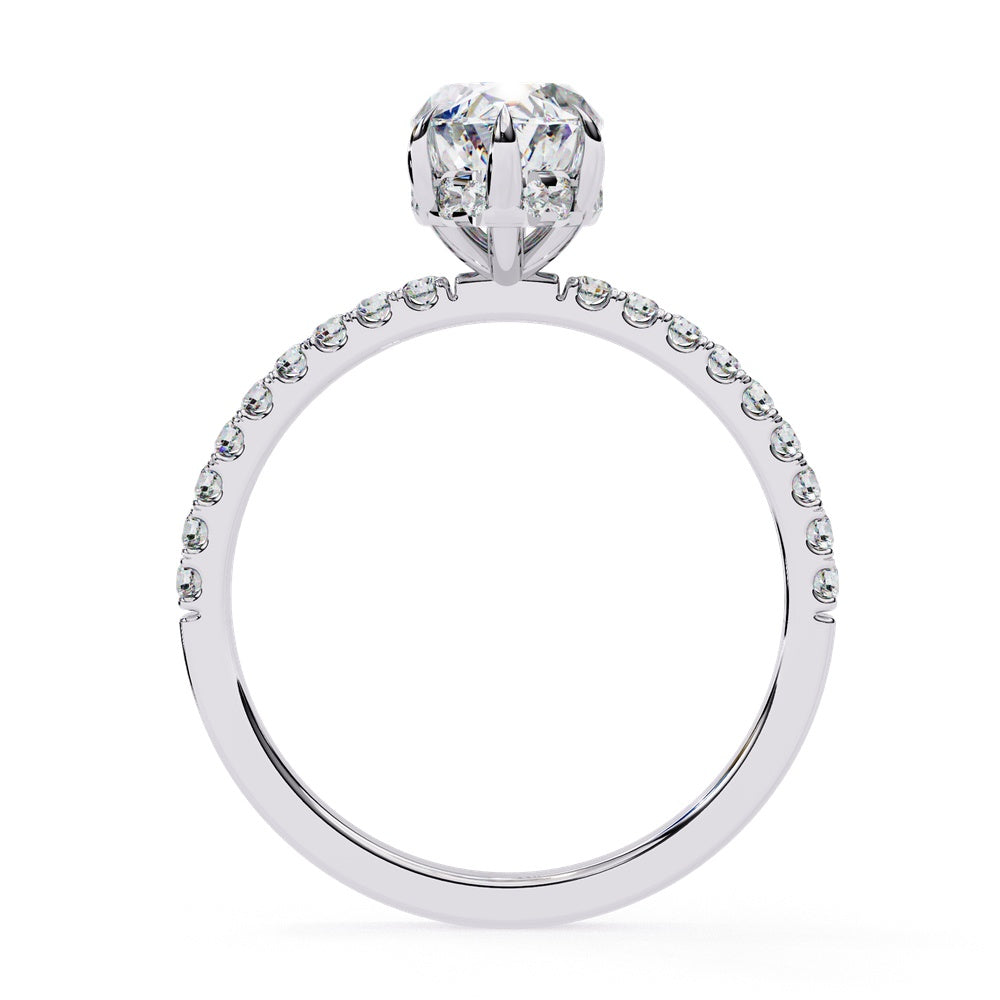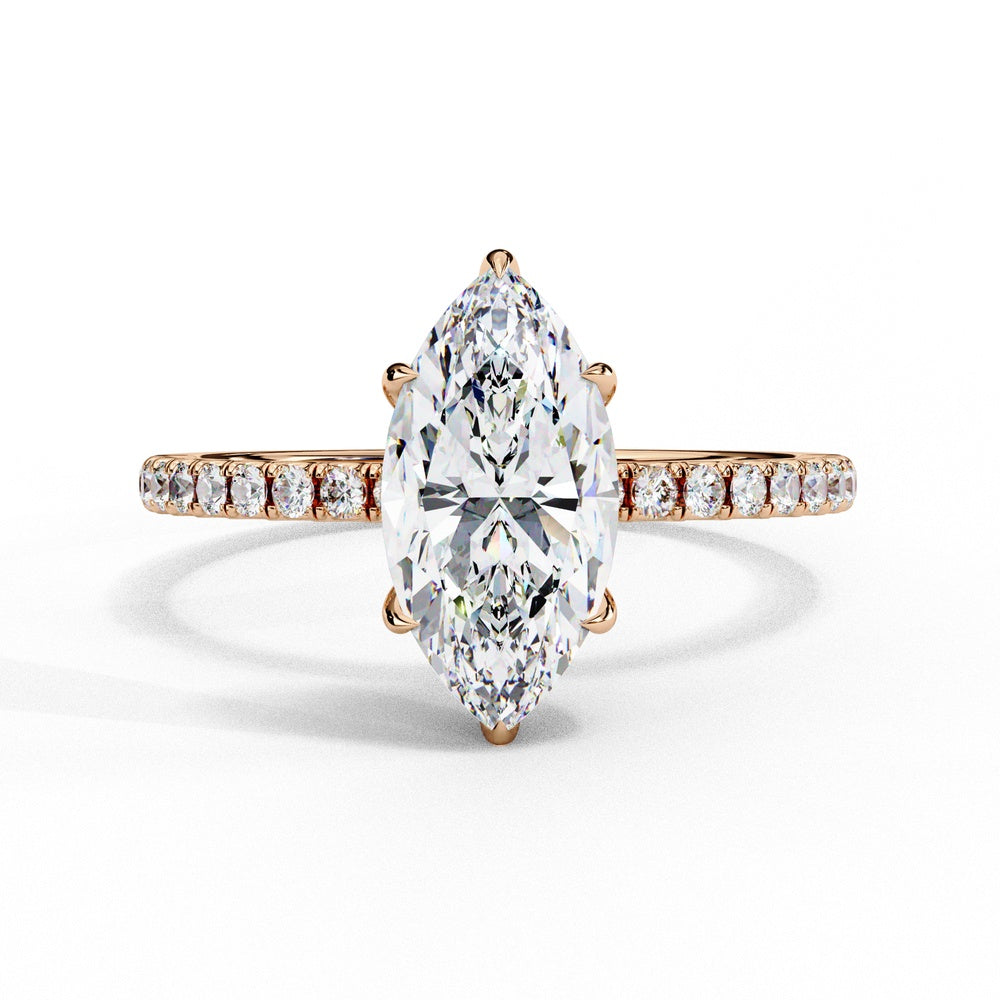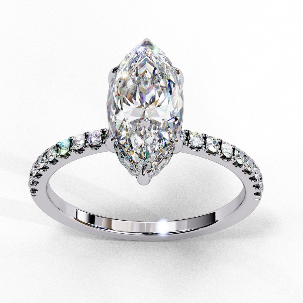 Studded Marquise Solitaire Ring with Hidden Halo