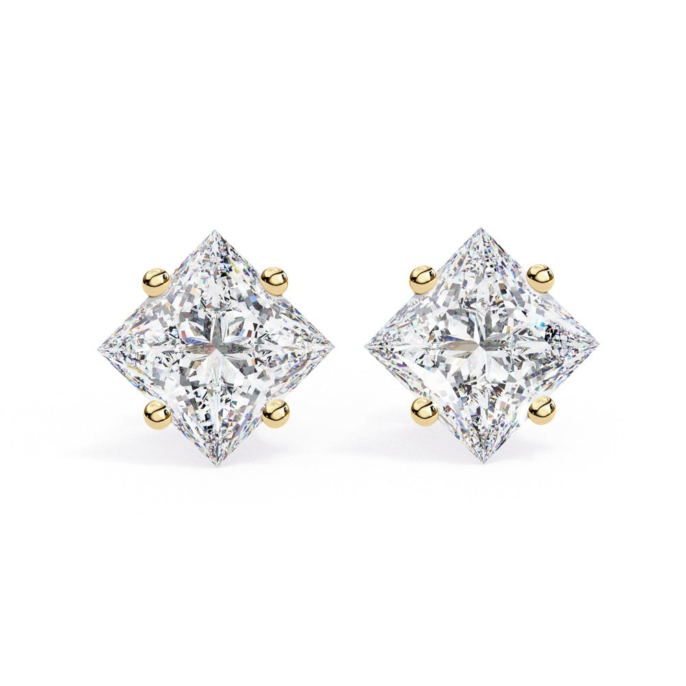 Princess Cut Solitaire Stud Earrings in Cross Basket